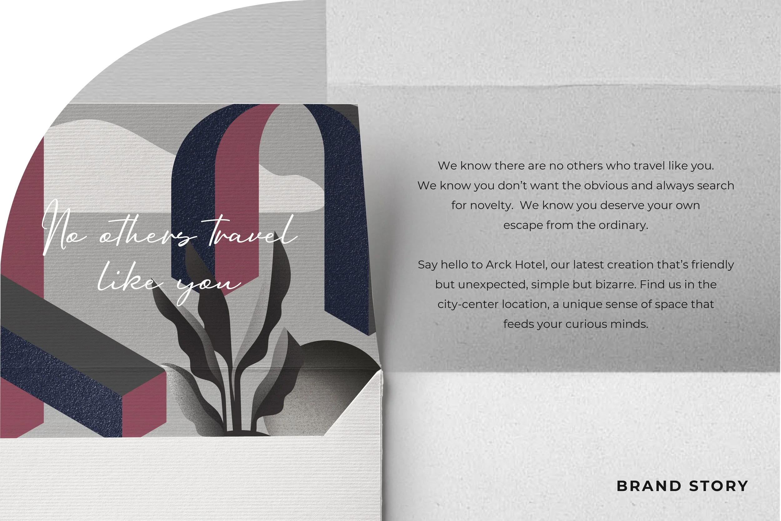 Through brand identity, photography, an engaging website, and our tagline "No others travel like you do," we help Arck authentically showcase what makes their experience one-of-a-kind. By representing the hotel's character and locale, we open doors for travelers seeking escapes outside ordinary expectations.